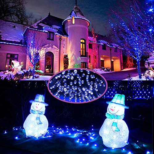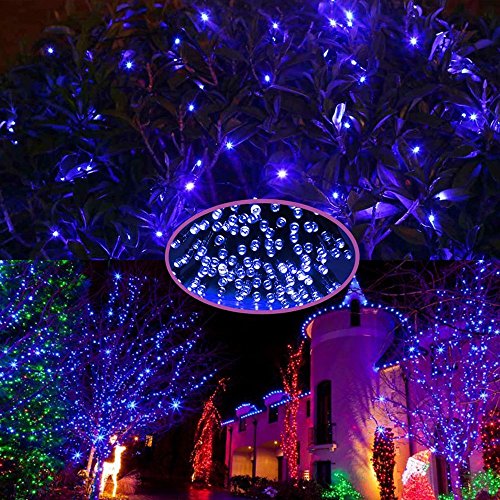 LE LEDストリングライト ソーラー 光センサー内蔵 17メートル 100灯 2発光モード 防水 庭 パーティー 結婚式 ブルー