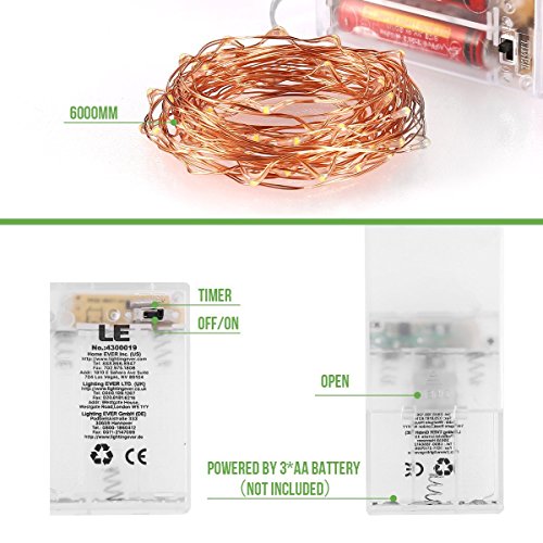 LE 電池ホルダー 60 LED 6m ストリングライト イルミネーションライト 防水銅線ワイヤー フェアリーライト 3点セット クリスマス 結婚式 パーティー イベント 装飾 電球色