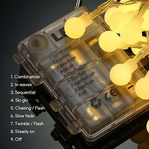 LE バブル型 LED イルミネーション 60球 ストリングライト 電池式 防水 全長6.5m クリスマス 電飾 パーティー 結婚式 電球色