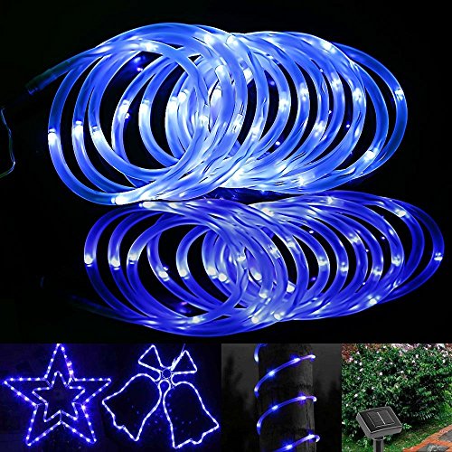 LE ロープライト ソーラーライト 環境の光センサー 7メートル50LED 青色 防水 庭 パーティー 結婚式 クリスマス