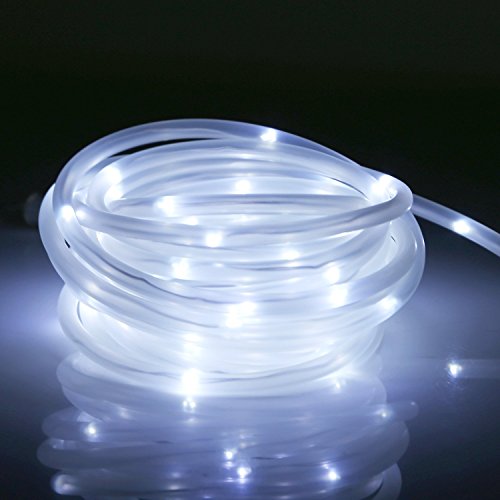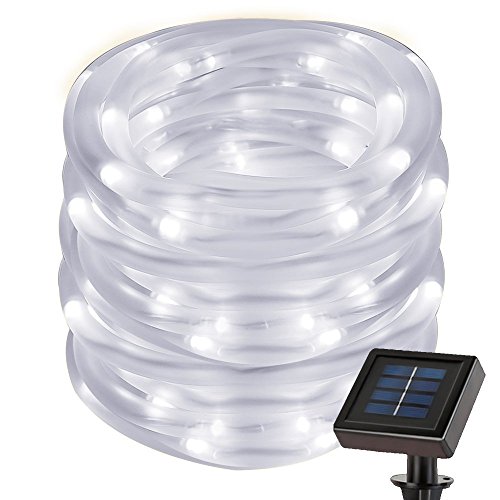 LE ソーラー充電式 LEDロープライト イルミネーションライト ガーデンライト 50LED 7m ポータブル 光センサー 防水 昼光色 クリスマス パーティー 結婚式