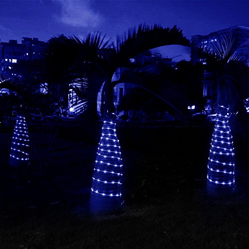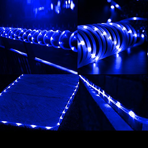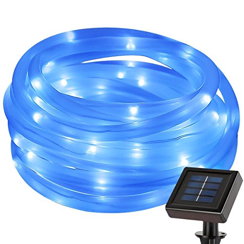LE ソーラー充電式 LEDガーデンライト ソーラーライト ロープライト 50LED 7m 防水 ポータブル 光センサー 青色 クリスマス 結婚式 パーティー