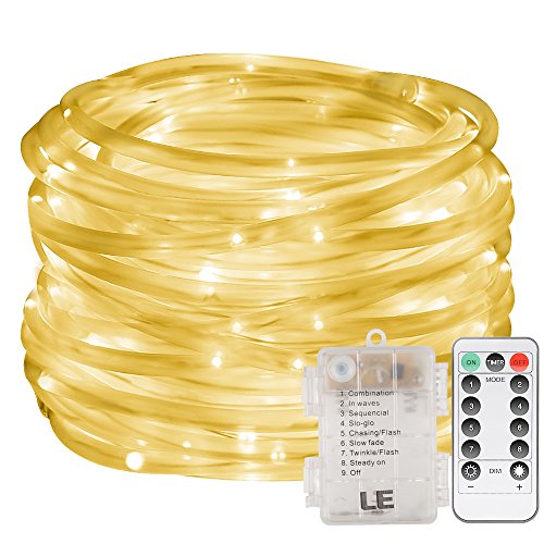 LEロープライト 33フィート/10メートル 120LED 調光可能 防水 8モード 充電式 庭、テラス、パーティー、クリスマス、アウトドアの装飾に最適 電球色