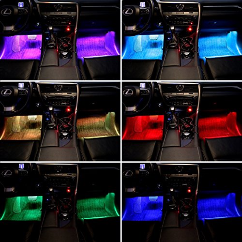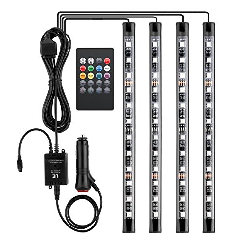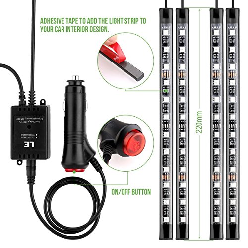 LE 車内装飾用 LEDテープライト RGB 防水 22cm×4本 フットランプ 5050 12LED リモコン付属 全8色に切替