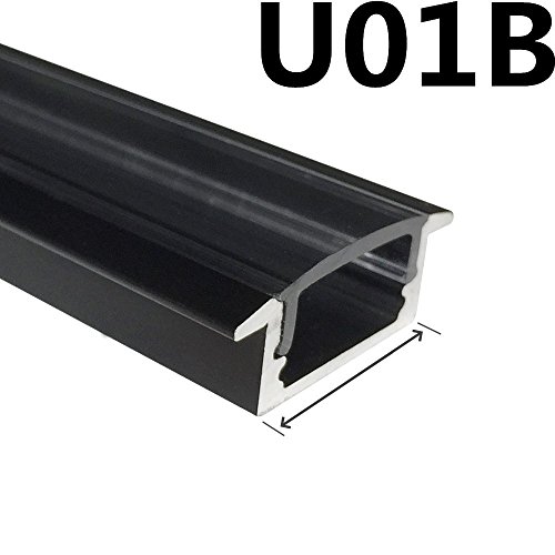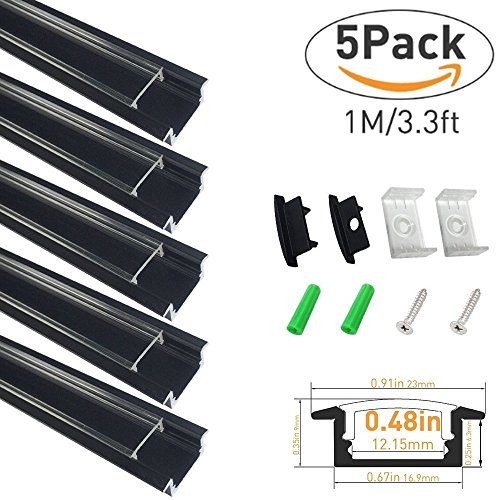 LightingWill LEDアルミチャンネルUタイプ 3.3 Ft/1M 12mm以下5050 3528 LEDライト用 カバー エンドキャップなどの付属品が付き ブラックチャンネル乳白色カバー(5本セット)