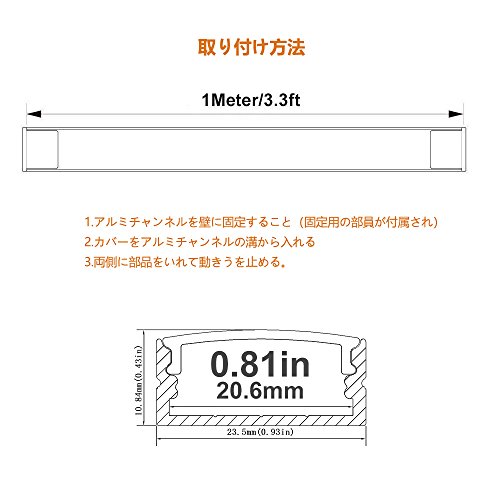 - ●パッキングリスト:アルミチャンネルカバー(x5)、エンドキャップ(x10)、取り付けクリップ(x10)、ネジセット(x10)