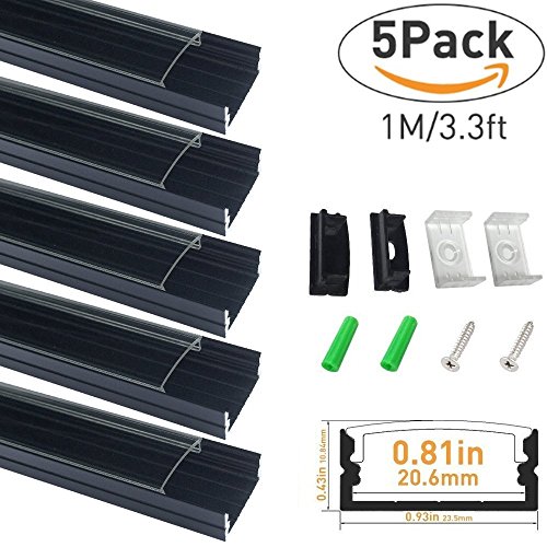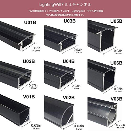 LightingWill LEDアルミチャンネルUタイプ 3.3 Ft/1M 20mm以下5050 3528 LEDライト用 カバー エンドキャップなどの付属品が付き ブラックチャンネル透明色カバーU04B10(5本セット)