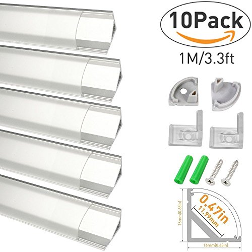 LightingWill LEDアルミチャンネルVタイプ 3.3 Ft/1M 12mm以下5050 3528 LEDライト用 カバー エンドキャップなどの付属品が付き シルバーチャンネル透明色カバーV02(10本セット)