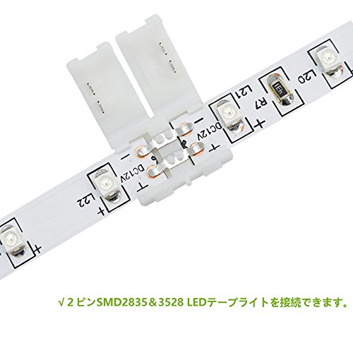 LightWill LEDテープライトコネクタSMD3528 2835 2ピン 、8mm幅LEDストリップライトコネクタ、LEDテープ装飾直角スナップコネクタ、LEDストリップコーナージャンパー、LEDテープと簡単接続、半田不要[10本セット]