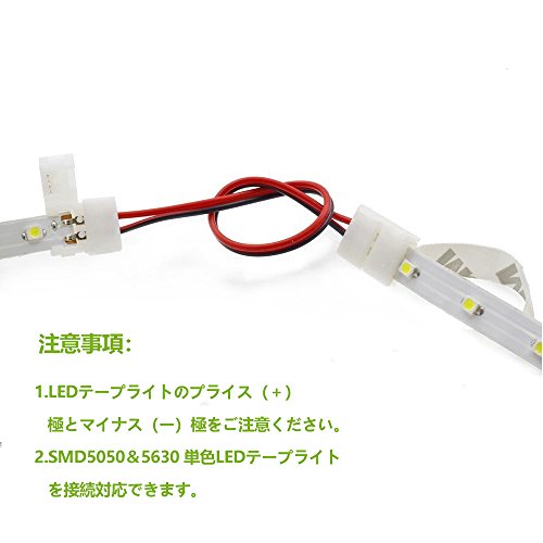 LightWill LEDテープ延長用ケーブル 2ピン コネクタ10mm SMD5050 5630 単色用 片側半田付け不要 (10mm 単色用延長ケーブル)[10本セット]