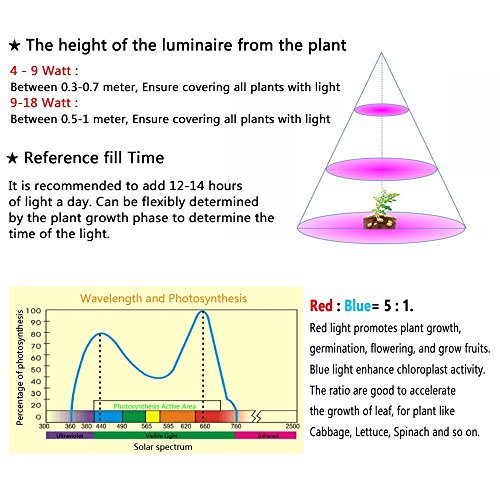 - ✿植物との距離が1メートル以下なら、植物を傷つける恐れがあります。ライトを使って、植物の光合成、植物に対する栄養の吸収(特にある微量元素の吸収)を助けます。成長の周期を短縮できて、植物の蔓延を防ぎます。