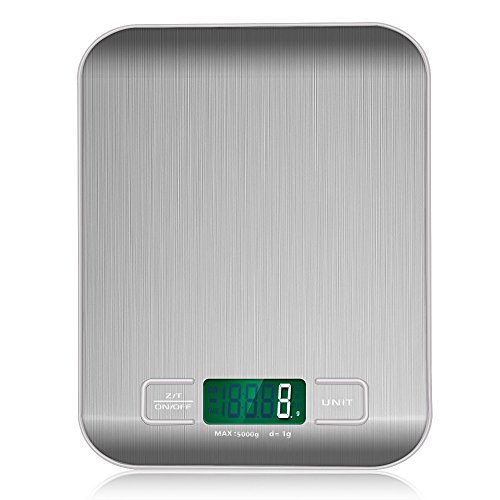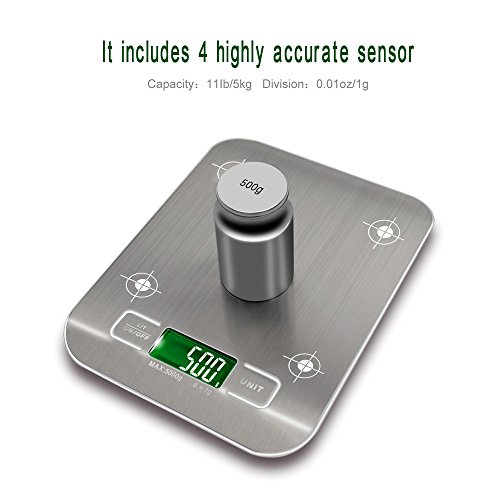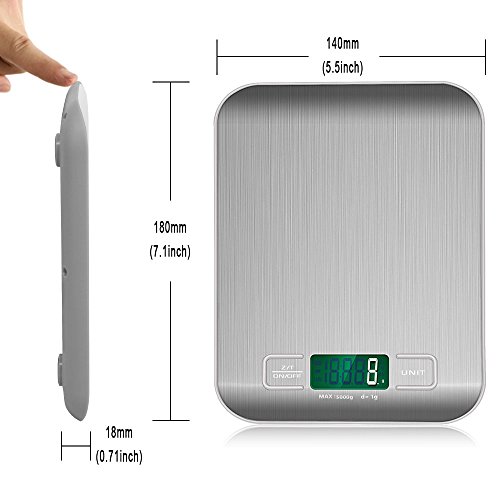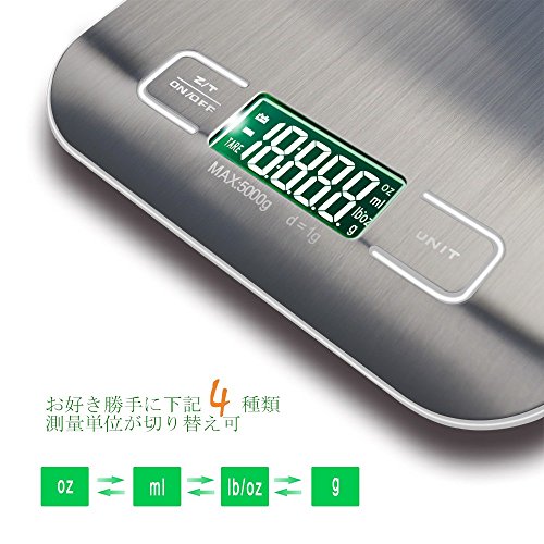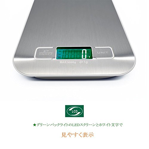 - [1g単位精度]:お料理などを作る際、食材や調味料の精密な量を確認するために最適!1g単位で5キロまで!