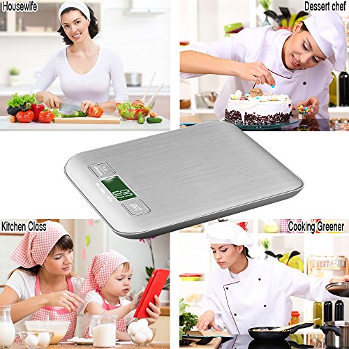 [クッキングスケール]LinGear Direct キッチンスケール デジタルスケール 計量 はかり 電子秤 天秤 [1g単位5Kgまで] ゼロリセット 風袋引き機能付き ステンレス製 お手入れ簡単 収納しやすい 4種類計量単位 お手料理に最適