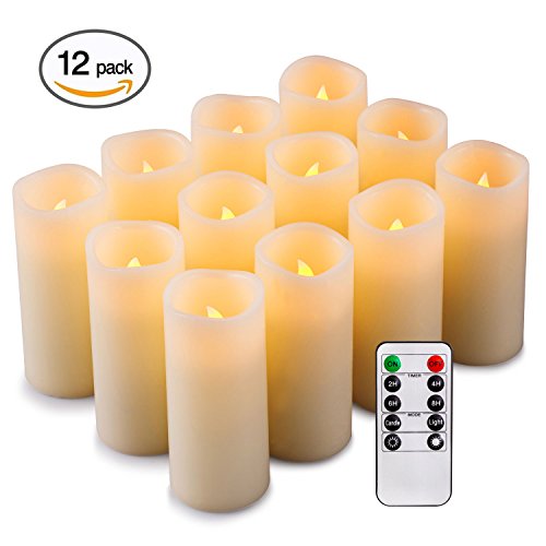 enpornkフレイムレスキャンドル電池式LED Pillar RealワックスちらつきElectricキャンドルwithリモート制御タイマー、アイボリー色、12セット