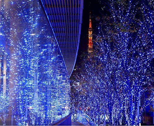 Linsam 10米100球 防水LED カーテンライト クリスマスイルミ LED イルミネーション 屋内外装飾用 8種類点滅モード , ブルー