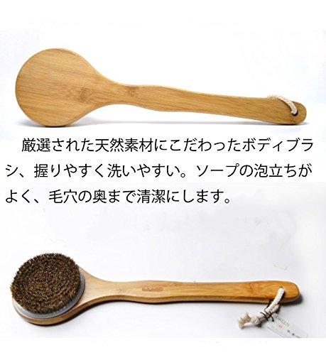 - 素材・材質: ブラシ(ソフト)=馬の毛でできているブラシ, 柄=竹材。お肌にやさしい天然毛、女性向けブラシ!豚毛よりも毛先が繊細で軟らかい、肌に触れた時のやさしさと刺激の少なさが特徴のボディブラシです!