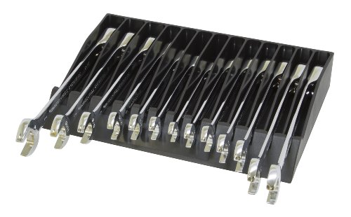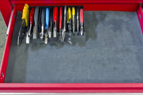 - Thirteen slots hold various shapes and sizes of wrenches and pliers.