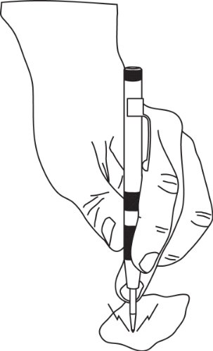 Automatic Firing Action.Automatic action fires to create a dimple when downwardpressure is applied. No hammer is needed. Works on metal plastic wood and other materials. Pressure can be varied byturning the knurled knob. Hardened tool steel tip isreplaceable. Length 5 1/2".