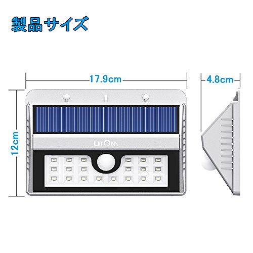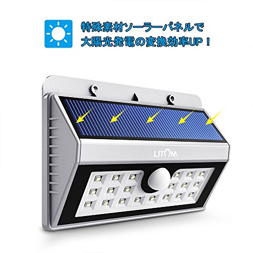 Litom 20LEDソーラーライト センサー搭載 表玄関/パーク/ポスト/ガーデン/縁側/ガレージ/パルコニー/庭などに照明用