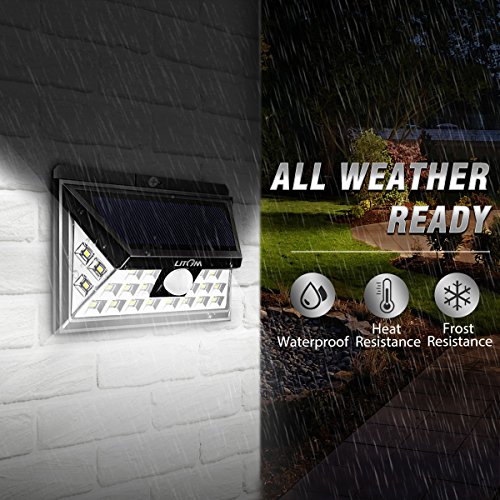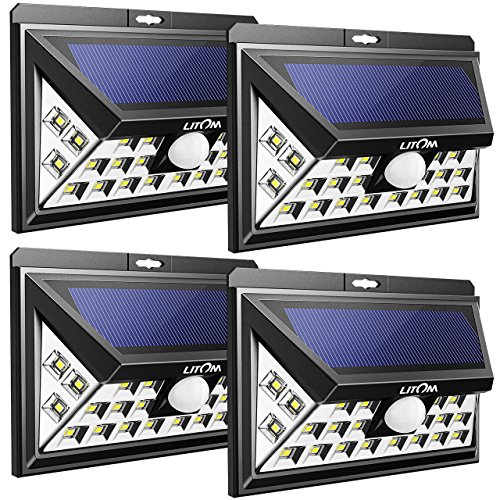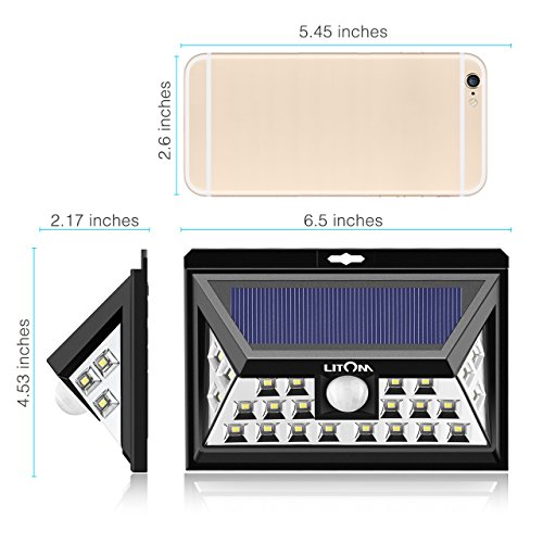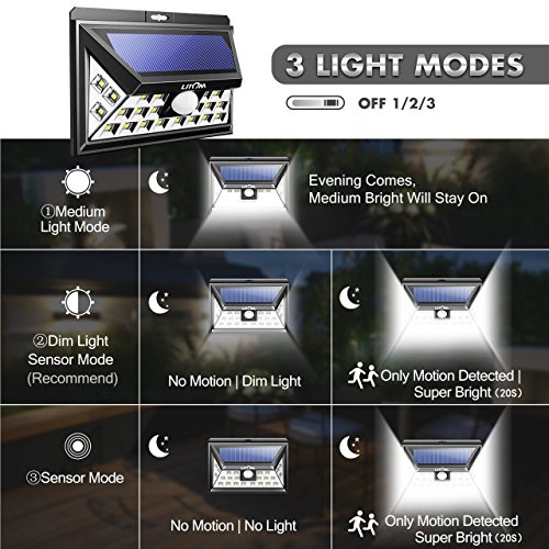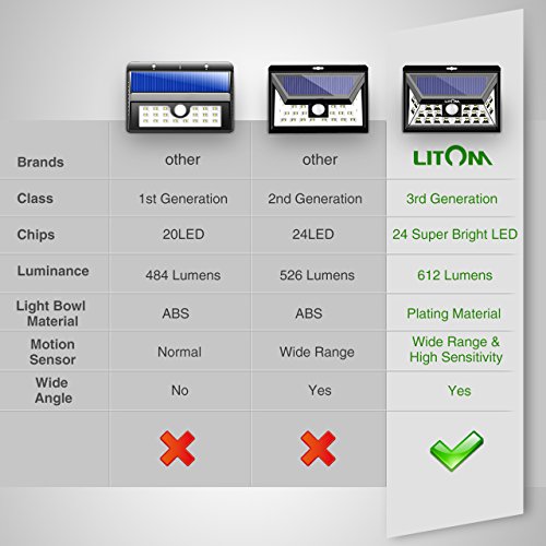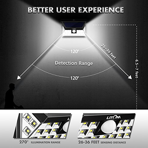 Litom 3rd-genメッキソーラーライトアウトドア、超明るいセキュリティソーラーライトモーションセンサー付き24 LEDの壁のパティオ、ガレージ、庭、バルコニー、RV 標準 ブラック LTCD013BH 4