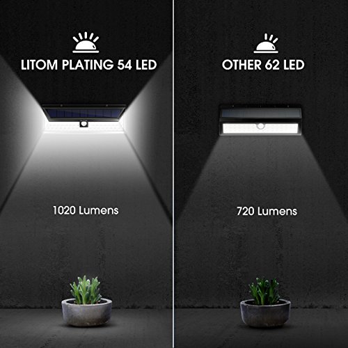54 SMD搭載LEDは、この太陽電池式ライトが提供する高い明るさの1020lm、これは市場でも同様のライトよりも明るいです。その低減衰値に梁をメッキ表面に集まるとは、ライトのおかげで、これを使ってより、容量が十分には同じLED番号には、「セキュリティHouseの頭文字をとった名称です。