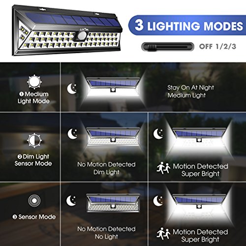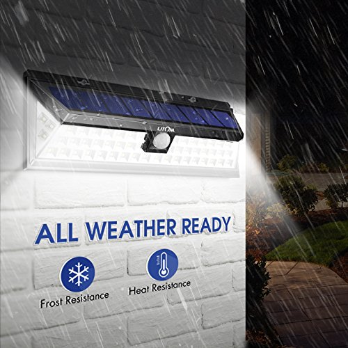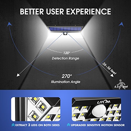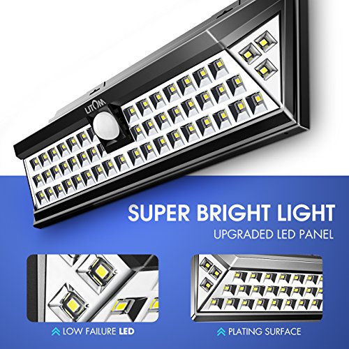 Litom 3rd-genメッキソーラーライトアウトドア、超明るいセキュリティソーラーライトモーションセンサー付き54 LEDの壁のパティオ、ガレージ、庭、バルコニー、RV
