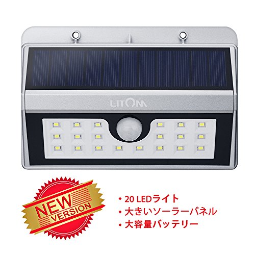 Litom ソーラーLEDライト センサー搭載 表玄関/パーク/ポスト/ガーデン/縁側/ガレージ/パルコニー/庭などに照明用(2本セット)