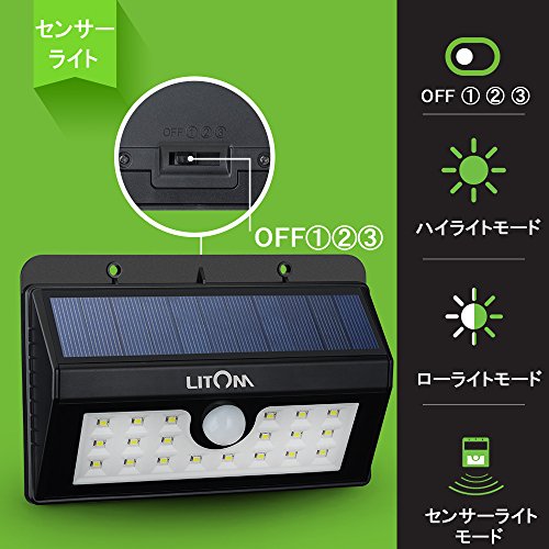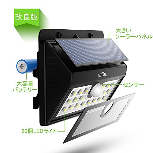 Litom 【改良版】ソーラーライト センサーライト 20LED 防犯 IPX55防水 表玄関/パーク/ポスト/ガレージ/パルコニー/庭などに屋外照明用(2点セット)