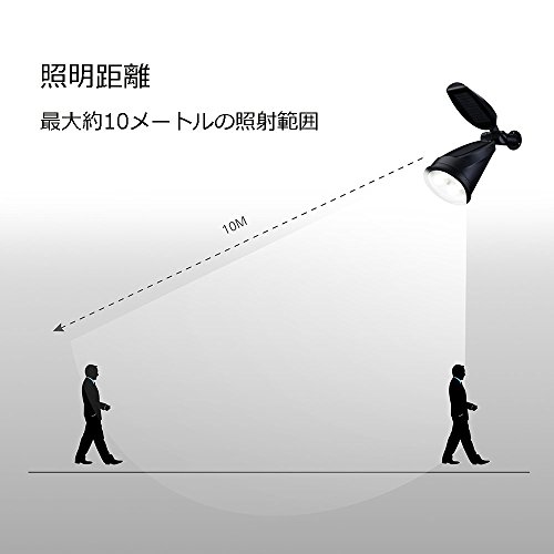 - 角度調整&照明距離:照明角度を90°まで、太陽パネル角度によって150°まで調整可能です。バージョンアップにより照射距離は最大約10メートルになります。