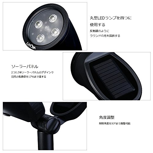 Litom ソーラースポットライト ガーデンライト 非常用LEDライト 2つのソーラーパネル 屋外の歩道/芝生/車道/庭/壁などに適用