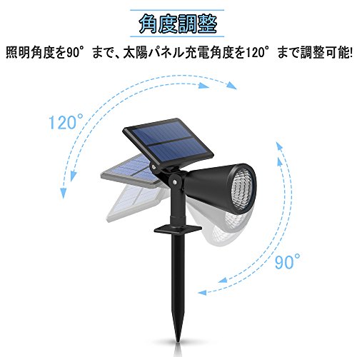 - 【角度調整&照明距離】照明角度を90°まで、太陽パネル充電角度を120°まで調整可能です。照射距離は最大約10Mです。