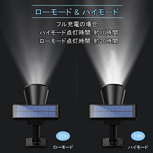 - 【照射モード&点灯時間】2照射モード:ハイモード、ローモード。フル充電の場合、ハイモード点灯時間:約10時間、ローモード点灯時間:約20時間。辺りが暗くなると自動に点灯します。