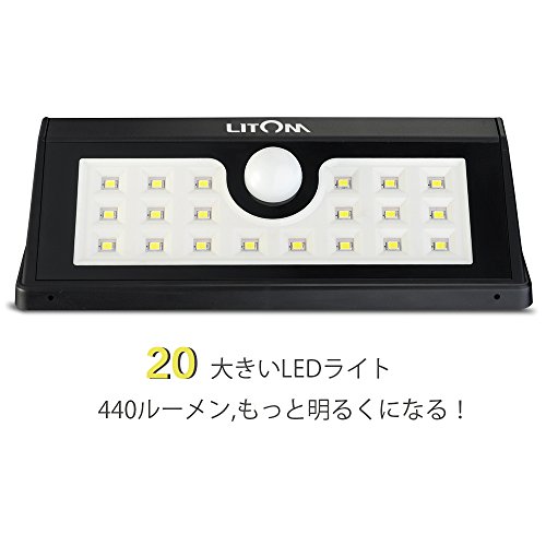 Litom ソーラーライト センサーライト 20LED 防犯 表玄関/パーク/ポスト/ガレージ/パルコニー/庭などに屋外照明用(2本セット)