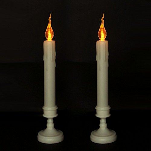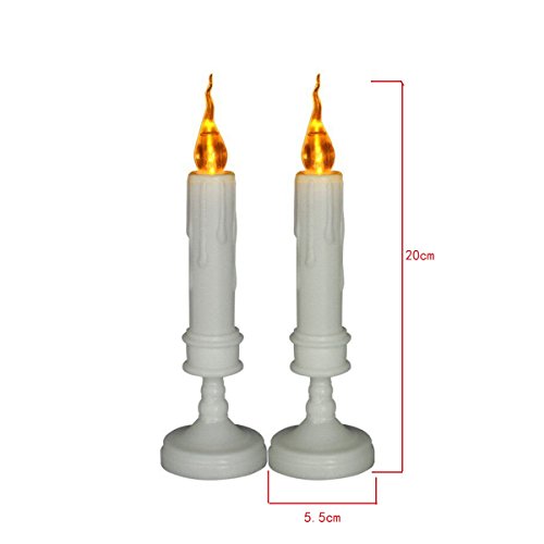 LEDウィンドウキャンドルちらつきフレームレスキャンドルテーパキャンドルスティックwith Holdeアイボリーホワイトのセット2電池式(含まHome Office Spaクラブカフェの装飾、ロマンチック取り外し可能ベース( white-7.9in ) 03
