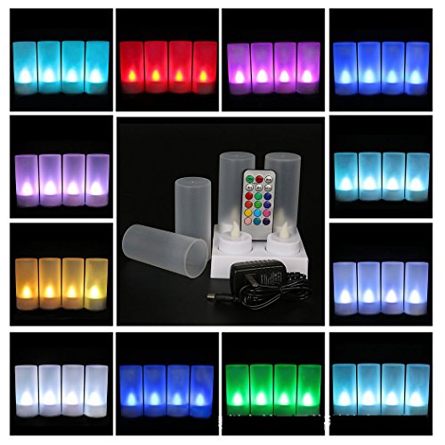 ノベルティ充電式マルチカラーLEDキャンドル、使わないTealight CandleランプFrostedシェルとリモート制御とタイマー