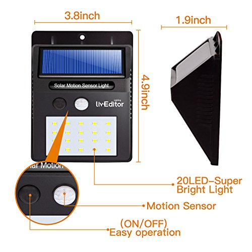 - 超高輝度: 20強力なLEDで、運動角度は120度に照明することができるようになります。これは、素晴らしいイルミネーションと明るいダークスペースに空間が使用されています。それは完璧な選択で使用するガーデン、フェンスに、パティオ、デッキ、庭、私道、階段、外壁など
