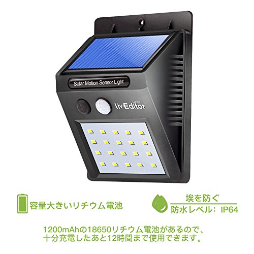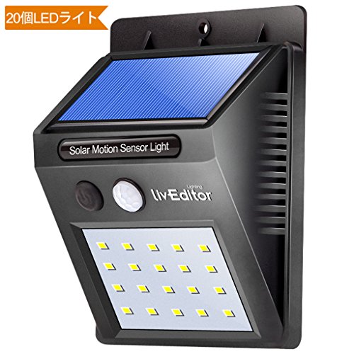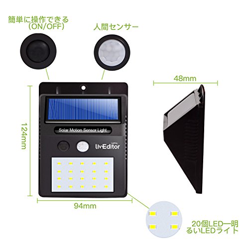 LivEditor 20個LED センサーライト ソーラーライト 玄関ライト 人感センサー 外灯 屋外照明 玄関 壁掛け 庭先用 夜間自動点灯 配線不要 取付簡単(2本セット)