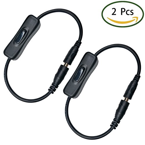 Liwinting 2本インラインオン/オフスイッチ、DCジャックスイッチ(5.5x2.1mm)オス - メスDCアダプタコネクタ、ロッカースイッチ、トグルスイッチ、LEDストリップライトのために、LEDテープライトのケーブルと他のDC電源コネクタ(5.5x2.1mm)オス - メスDCアダプタコネクタ、ロッカースイッチ、トグルスイッチ、LEDストリップライトのために、LEDテープライトのケーブルと他のDC電源コネクタ(2個/パック)黒