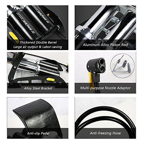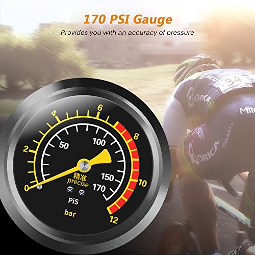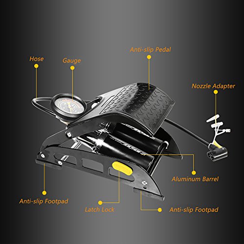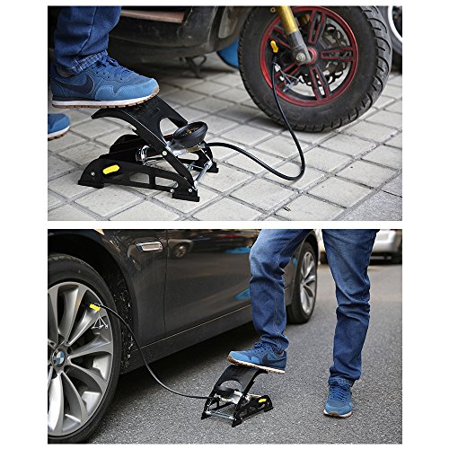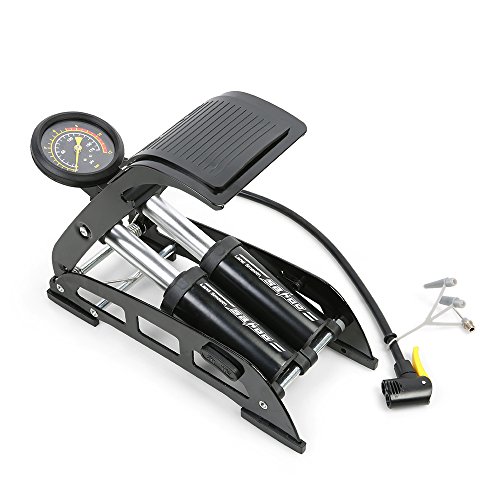 Lixada SAHOO アルミ合金フットエアポンプ 空気入れ バロメーター付きポンプ 自動車/バイク/自転車/ボール用