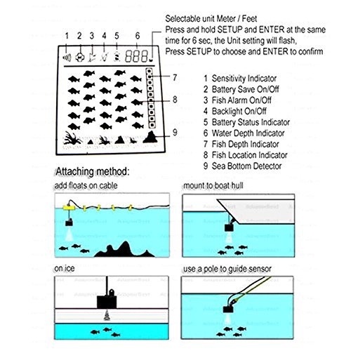 With fish depth scale and audible fish alarm.