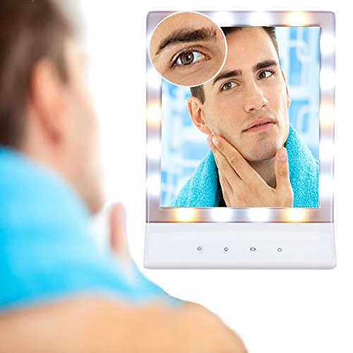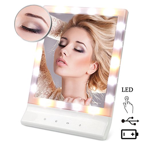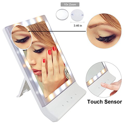 Lmeison 卓上化粧鏡 LEDミラー 10倍拡大鏡付き LEDライト18灯 卓上ミラー (ホワイト)