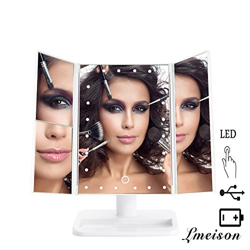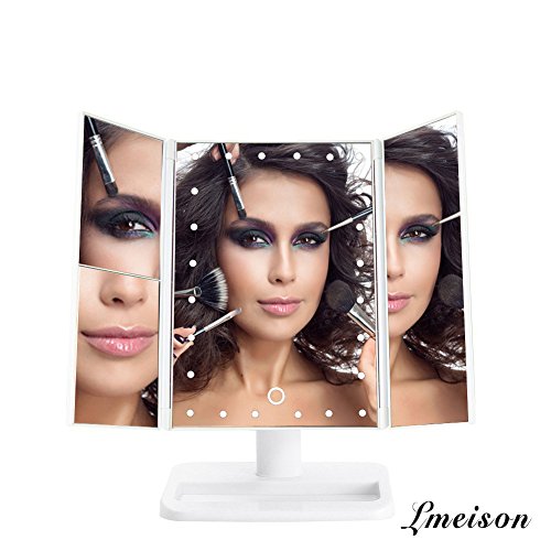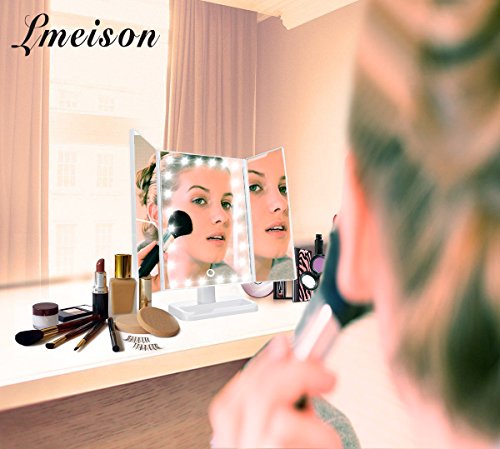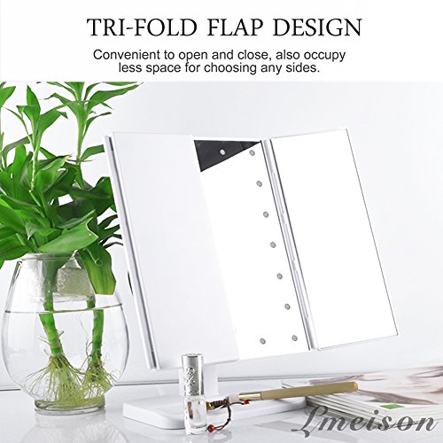 Lmeison 三面鏡 LED化粧鏡 スタンドミラー 24LED 2,3倍拡大鏡メイクミラー 折り畳み式 卓上スタンドミラー 角度自由調整 (ホワイト)