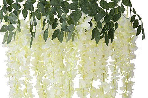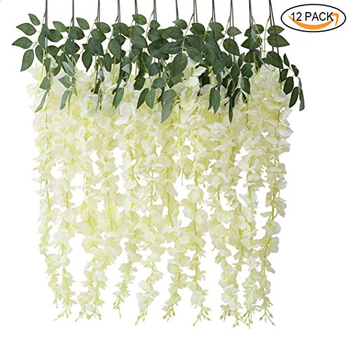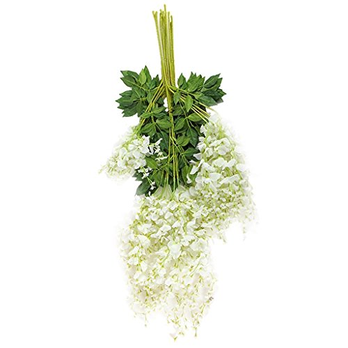 3.6フィート人工花、Lmeison FakeシルクWisteria Vine Ratta Hanging Garlandシルクフラワーウェディング、ホームパーティー飾り12パック(ホワイト)