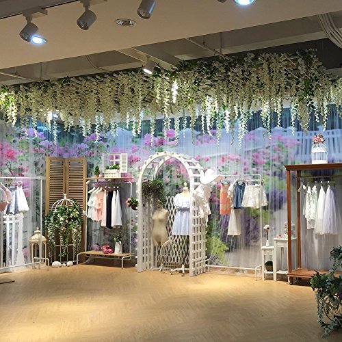 - 優れた品質とナチュラル材質:藤の花はすべてオリジナルの手作り、ソフトシルク布使用された花びらと茎ののプラスチック製。花がいっぱいになっていて、リッチ、ハンギング効果を向上させることができます。リーフテクスチャ刃の透明な、光沢のある表面