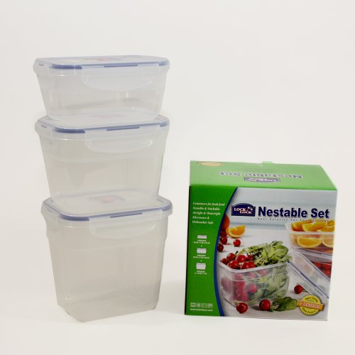 Lock and Lock 7 piece nestable set;Container Capacities;1 x 100ml 1 x 260ml 1 x 520ml 1 x 950ml 1 x 1.6ltr 1 x 2.5ltr 1 x 4ltr. Containers microwave and dishwasher safe nestable effect for easy storage - Russian doll effect;Lock & Lock set;Air tight;Microwave safe (re-heating with lid positioned loosely);Dishwasher safe - top rack only.