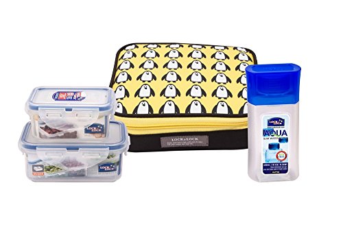 LOCK & LOCKペンギンFusionプラスチックのランチボックス付きバッグセット、3ピース、マルチ