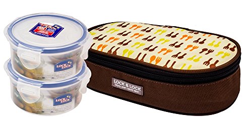 LOCK & LOCK Brunchフラットプラスチックランチボックスwith Bag Set , 2-pieces、マルチ