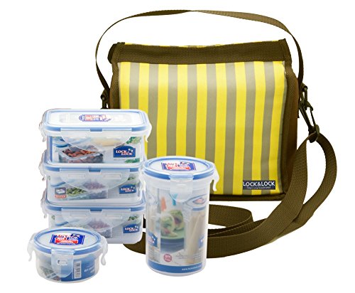 ロック&ロックフル日Mealプラスチックランチボックスwithバッグセット、5-pieces、マルチ