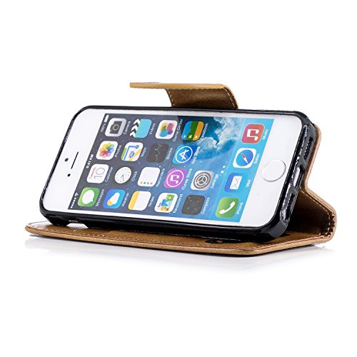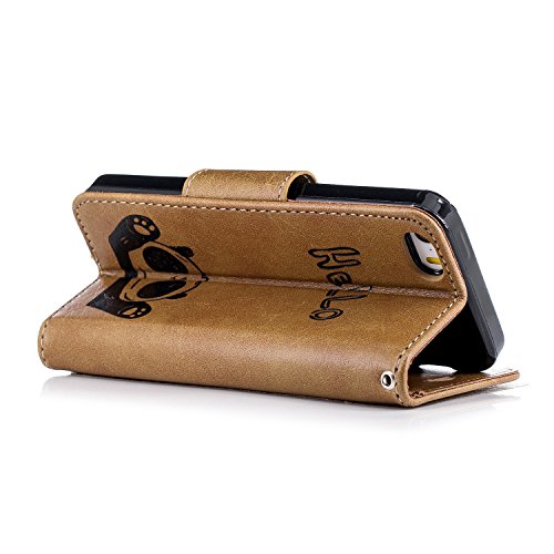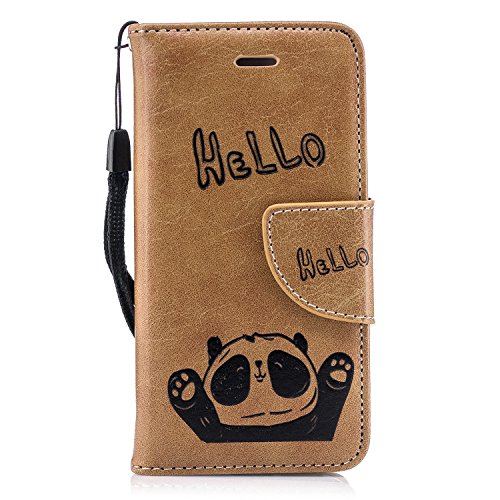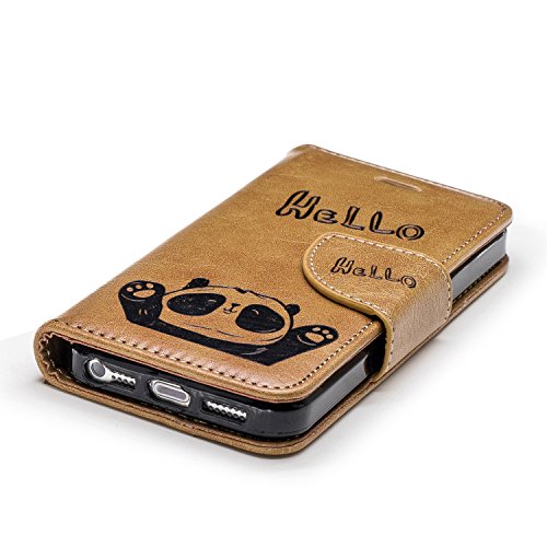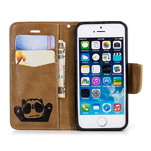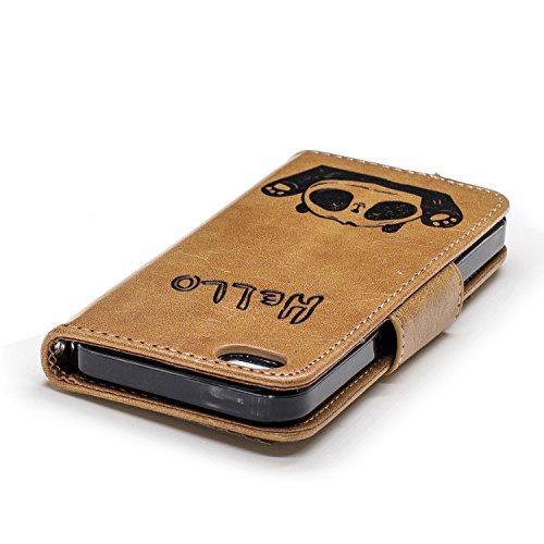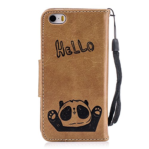 Lomogo iPhone5Sケース/iPhone5ケース/iPhoneSEケース 手帳型 パンダ 耐衝撃 レザーケース 財布型 カードポケット スタンド機能 マグネット式 アイフォン5S 5 SE 手帳型 パンダケース カバー 人気 - LOBFE12317 茶