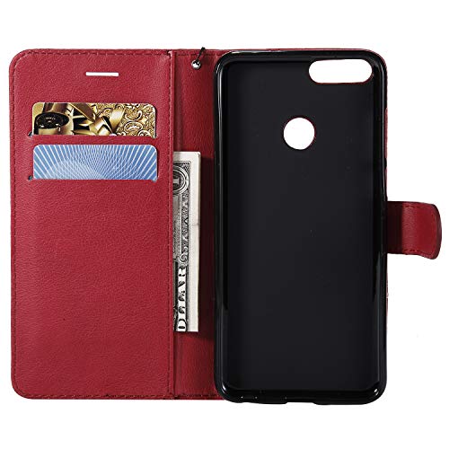 Lomogo Huawei Nova Lite 2 ケース 手帳型 耐衝撃 レザーケース 財布型 カードポケット スタンド機能 マグネット式 ファーウェイNovaLite2 手帳型ケース カバー 人気 - LOKTU23123 赤